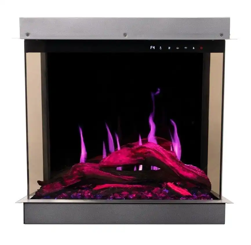 Efekt plameňa na báze virtuálneho zobrazovania umožňuje vybrať si z troch rôznych štýlov plameňa. Dodáva sa s kryštálmi a priesvitnými polienkami, ktoré vytvárajú dojem žeravého dreva s prskajúcimi iskričkami. Jeho špecialitou je nádherný vysoký plameň, ktorý je nezávislý od kúrenia, čím vám umožní používať krb po celý rok, dokonca aj v horúcich dňoch. Užite si oheň, kedykoľvek chcete. Kúrenie môžete kedykoľvek zapnúť alebo vypnúť. Sklo krbu sa nezohrieva a je bezpečné pre deti a zvieratá.