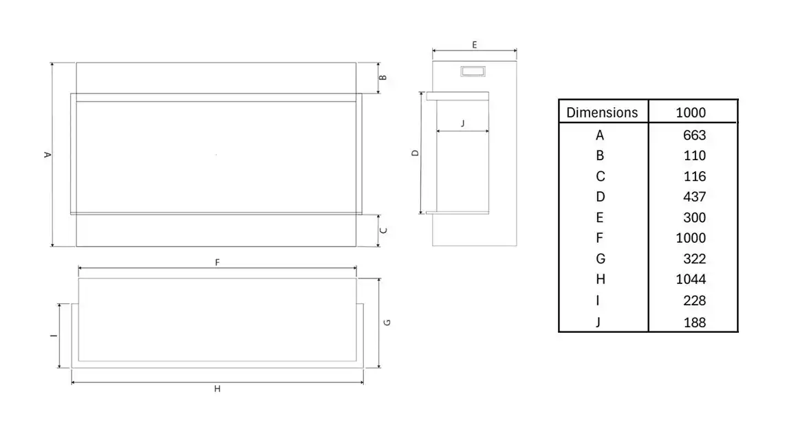Špičkový plameňový efekt dotvárajú prepálené polienka a tlejúce uhlíky. Pre realistickejší efekt je možnosť dokúpiť polienka "Real Wood" za 288,- €. Bočné panely sú odnímateľné, preto krb môže byť 3-stranný, rohový alebo čelný.