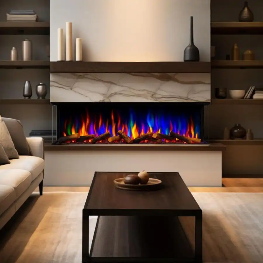 Krbová vložka je s viacfarebným ohniskom a modernou LED technológiou, ktorá znamená nízku spotrebu. Trojstranné sklo poskytuje krásny výhľad na oheň. Efekt plameňa dokonale reprodukuje skutočný oheň. Imitácia polien a zvuk horiaceho dreva vytvárajú maximálnu podobnosť s krbom na drevo.